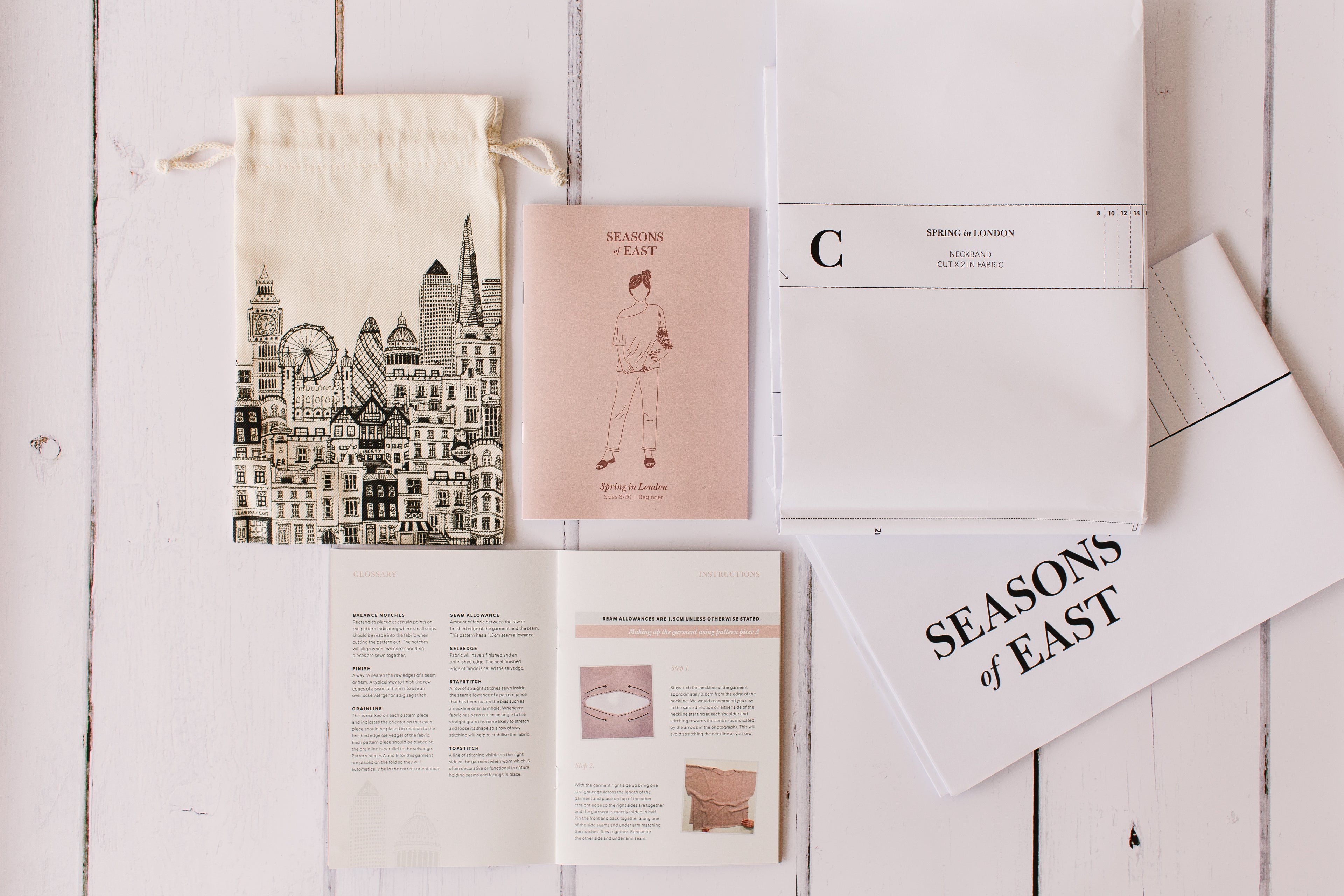 As we do not currently have a bricks and mortar shop, the scheme is only available at the UK's two major sewing shows in London where we exhibit every year; Knit & Stitch at Alexandra Palace and The Stitch Festival at the Business Design Centre in Islington. Simply visit our stand where you can return your Seasons of East cotton drawstring bag and a member of our team will issue you with a discount code to use when placing your next order.